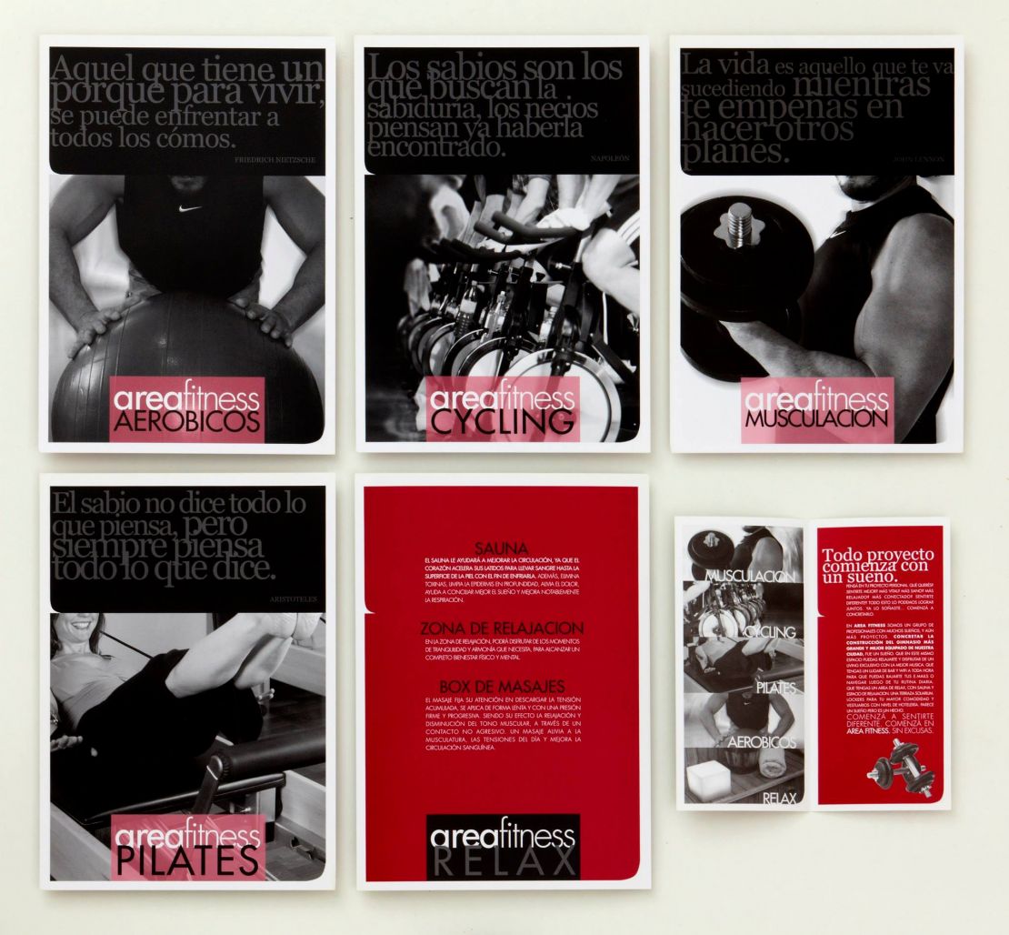 Elegimos trabajar todas las gráficas a dos colores y sus gamas, diferenciándonos del resto de los gimnasios que utilizan mucho color y estridencias.