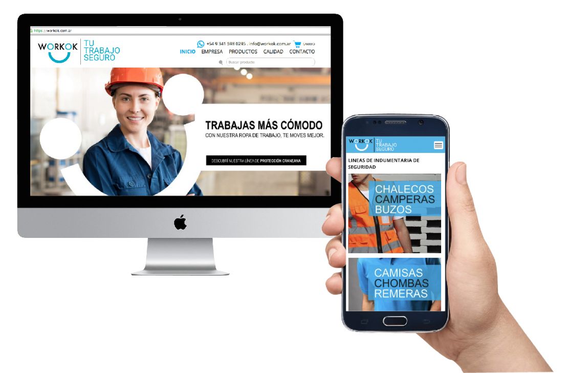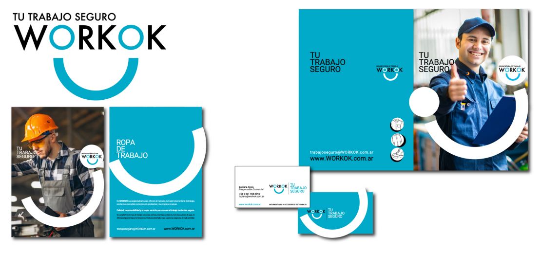 Creamos desde el nombre hasta el branding completo para esta importante marca de seguridad industrial. WORKOK es un nombre contundente que remite directamente al rubro. Tu trabajo OK.